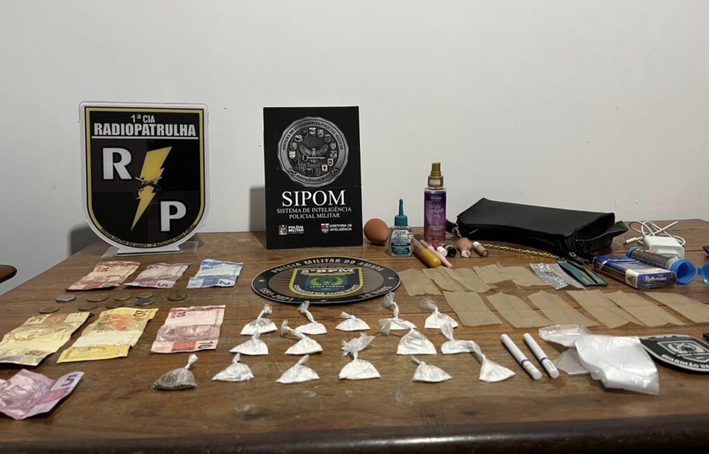 Durante as buscas, Gabriela foi revistada e acabou flagrada com 15 porções de substância semelhante à cocaína, 10 de crack, uma porção de maconha e R$ 104,95, além de materiais improvisados para embalar drogas. A jovem, moradora da zona norte, admitiu que traficava para sustentar os filhos.