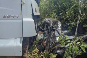 Um grave acidente foi registrado no fim da manhã deste sábado (6), no quilômetro 78 da BR-210, sentido Porto Grande. A colisão frontal envolveu uma picape...