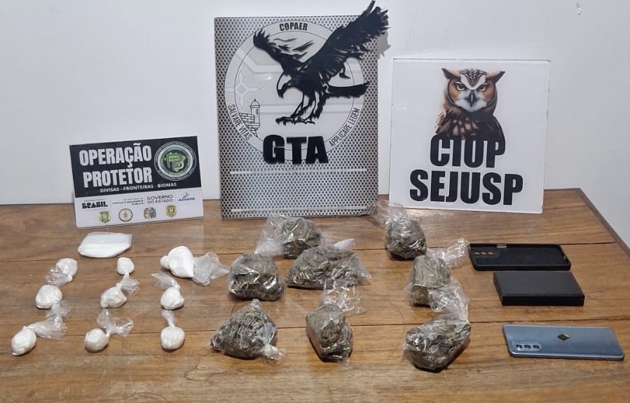 Policiais do Grupo Tático Aéreo (GTA) prenderam em flagrante Alexandre Marciel de Almeida, de 30 anos, no conjunto habitacional Macapaba, zona norte de Macapá. O suspeito, que usava tornozeleira eletrônica e já responde por roubo, foi flagrado com várias porções de cocaíca e maconha dentro de um apartamento.