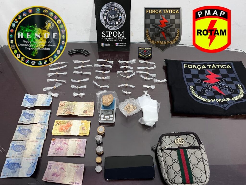 A ação de maior destaque ocorreu no bairro Congós, onde um casal foi surpreendido durante patrulhamento em área de ponte. Com eles, policiais encontraram maconha, cocaína e nada menos que 78 unidades de drogas sintéticas. O material estava em parte embalado para venda e parte ainda seria fracionado, evidenciando a atuação direta de facção criminosa.