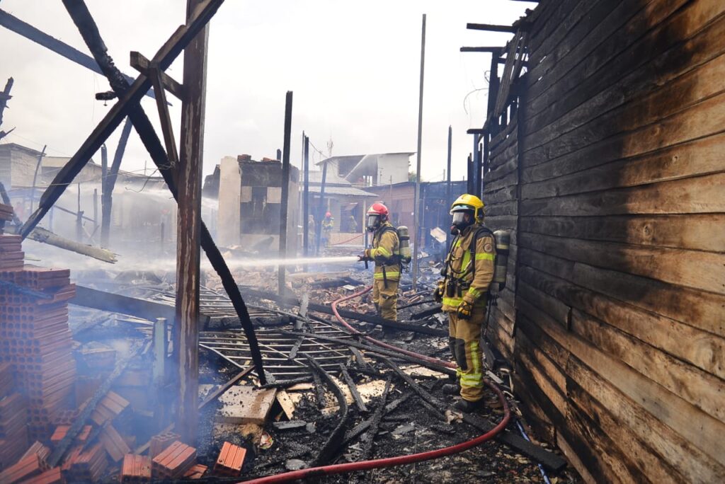 O combate ao incêndio durou mais de duas horas e contou com várias frentes de trabalho, devido à rápida propagação do fogo, favorecida pelas construções de madeira existentes no local. As equipes atuaram de forma intensa para evitar que as chamas se espalhassem para outras áreas.