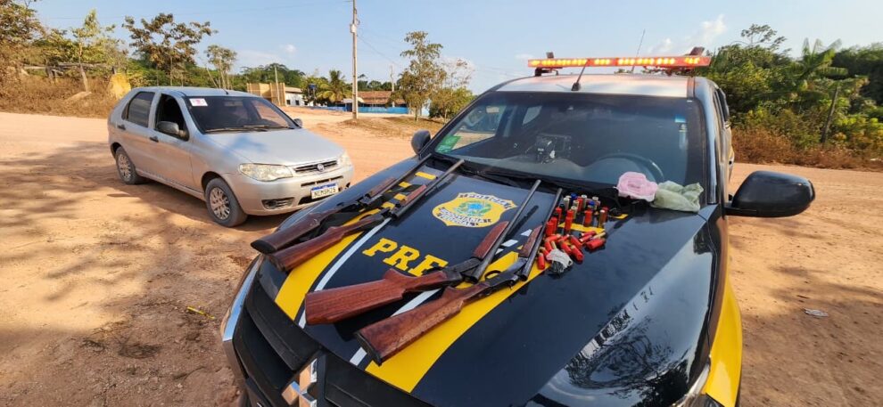O flagrante ocorreu no km 167 da BR-156, quando agentes da PRF abordaram um veículo e encontraram duas armas no interior. Após vistoria mais detalhada, foram localizadas outras duas espingardas, além de munições e acessórios.