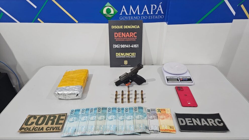 Na noite deste sábado (15), equipes da Delegacia Especializada de Repressão a Narcóticos (Denarc) prenderam um homem de 24 anos por tráfico de drogas e posse ilegal de arma de fogo no bairro Marco Zero, em Macapá. A ação teve apoio da Coordenadoria de Operações e Recursos Especiais (Core).